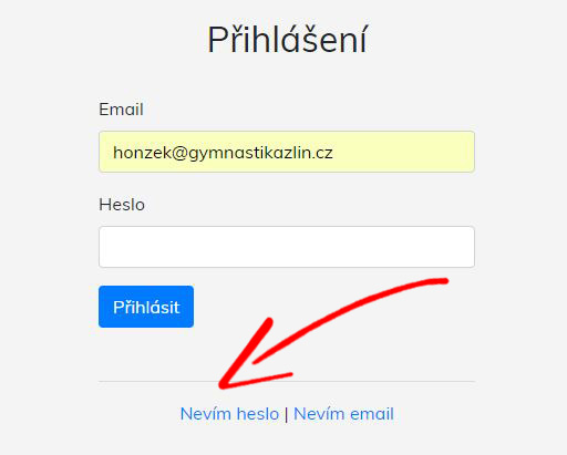 Pokud se jedná o Vaše první přihlášení do systému, je nutné si vytvořit nové heslo, se kterým se budete přihlašovat. Klikněte na "Nevím heslo" a zadejte mail, který jste použili při Vaší registraci v září. Na Váš mail bude doručen mail s odkazem na vytvoření nového hesla.