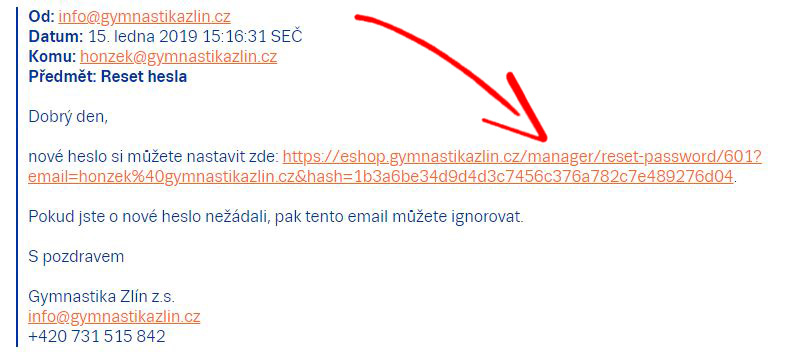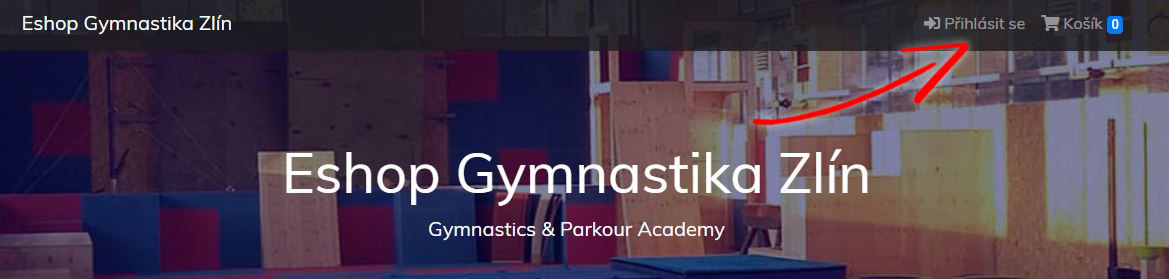 Přejděte na stránku ESHOP.GYMNASTIKAZLIN.CZ a klikněte v pravém horním rohu na "Přihlásit se" a zadejte e-mail a heslo k Vašemu účtu.